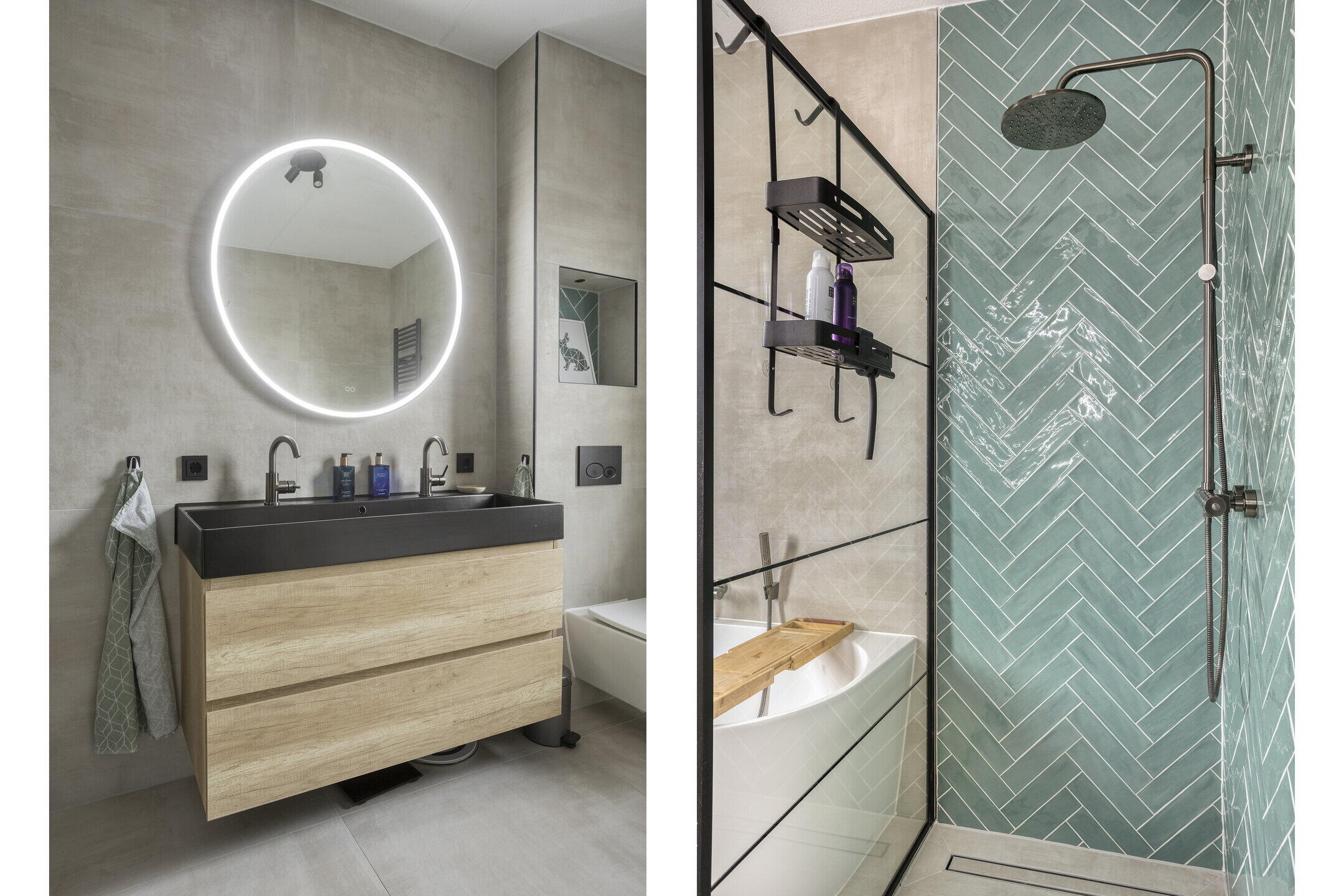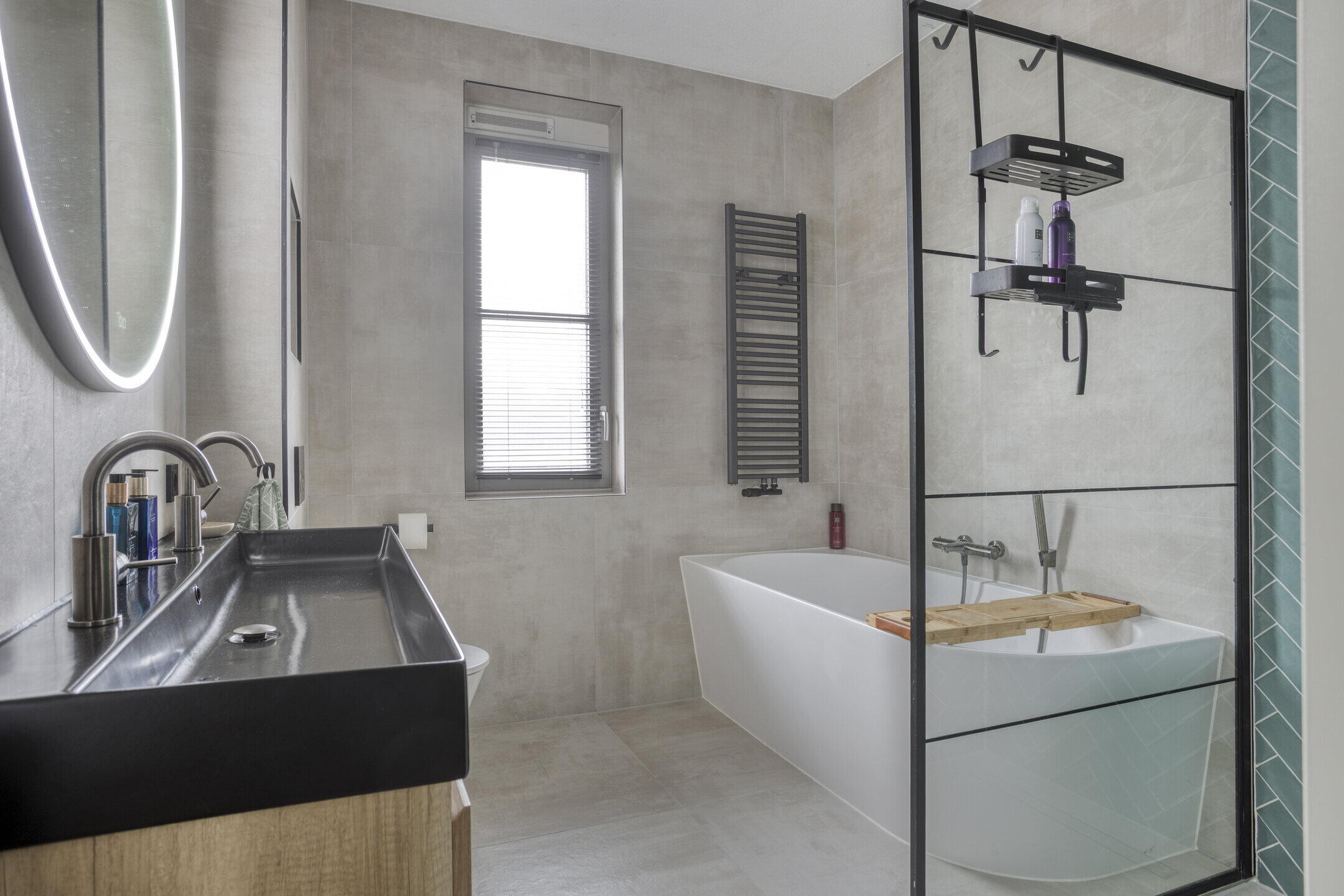 - Ligbad, toilet, douche, wastafelmeubel